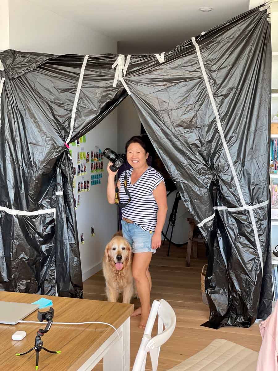 Much to the horror of my interior designer who has desperately been trying to get me to care about cushion colours and rug patterns (I just can’t!😭), the minute I moved in, I converted the study off the kitchen into a makeshift shoot room, complete with garbage bags taped across the entry to block the light. 😂