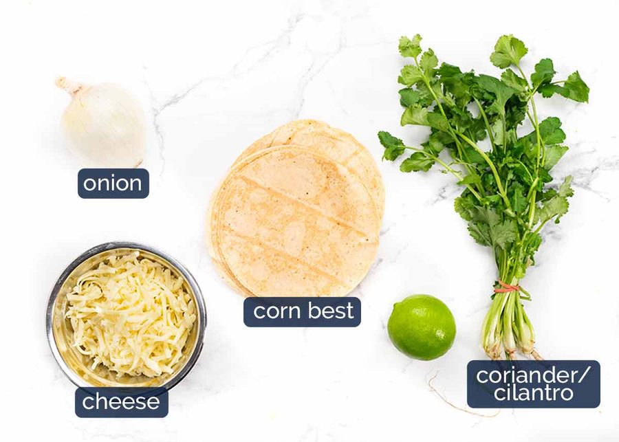 - Stuff – Spread cheese on half of each tortilla, top with beef, then onion and coriander/cilantro.