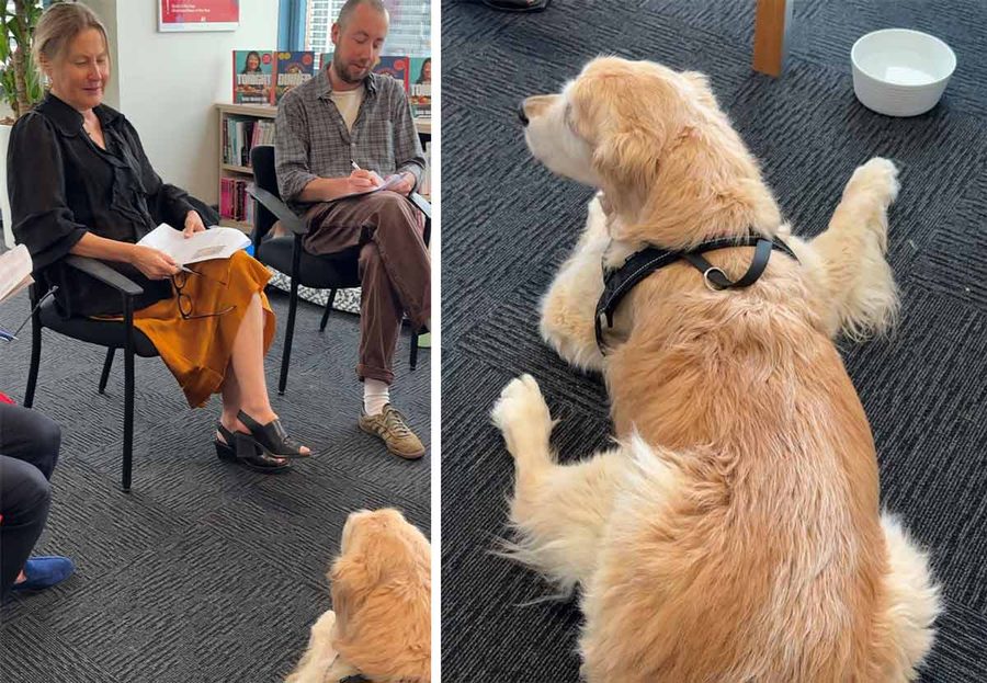 There was attempts at food swiping off the coffee table, splashing slobbery water everywhere as he gulped it down (in the publishing directors’ office, no less 🤣), barking persistently if someone dared to stop patting him (we took it in turns).