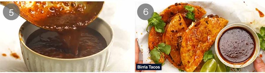 - Birria Consommé – Taste and check for salt, add more if needed. It should be on the slightly salty side (because it's used for dipping) but not too salty to drink a small cup like soup. Keep warm to use for dipping once tacos are done.