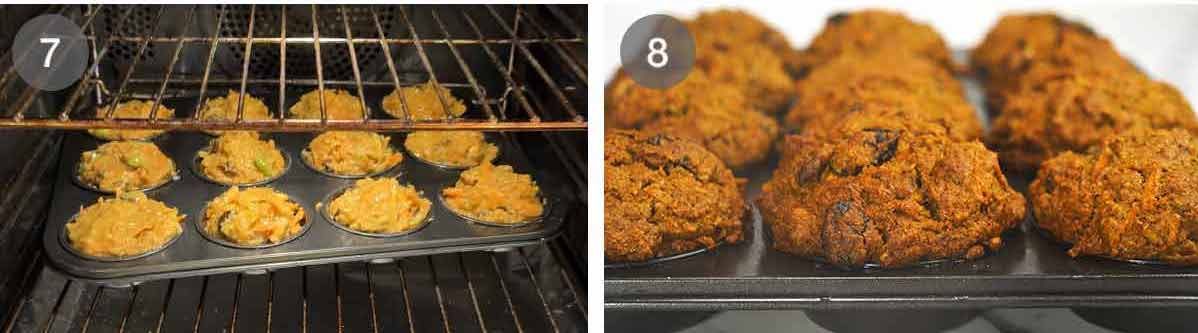 - Toast walnuts 190°C/375°F (170°C fan) 8 minutes. Cool, roughly chop. Whisk dry, whisk wet in separate bowl. Add wet into dry with add-ins, mix, fill oil-sprayed muffin tin. Bake 25 minutes.