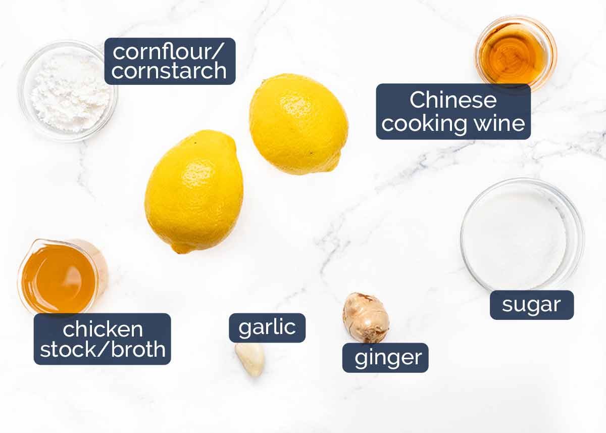 - Lemon Sauce – Place the cornflour and a splash of the chicken stock in a small saucepan. Whisk until lump-free, then add remaining stock and sauce ingredients. Whisk and bring to a simmer over medium heat, then let it simmer for 3 minutes, whisking every now and then until it becomes a thin honey consistency. At first, it will go very thick (too thick for sauce) then it becomes thinner. Remove from heat, cover and keep warm (reheated if needed to loosen).