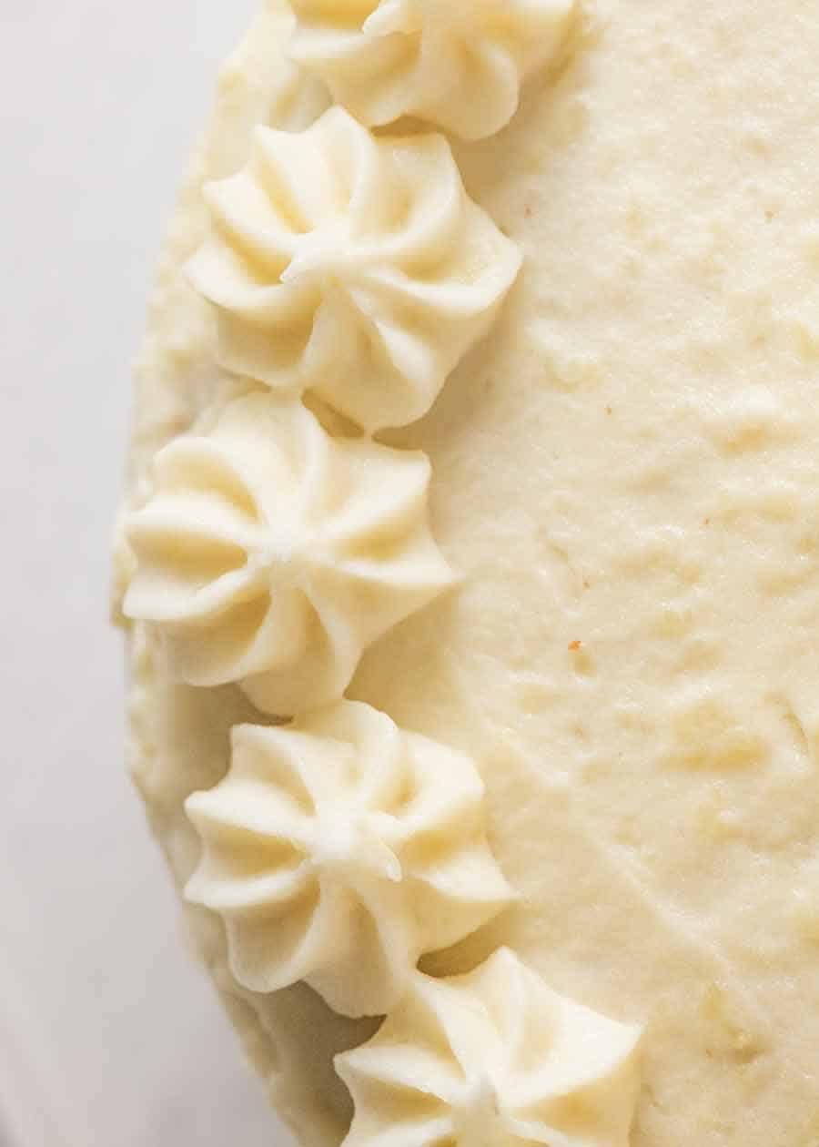 - Top with other cake. Frost tops and sides with remaining frosting, reserving some to pipe decorations if desired (3/4 cup frosting).