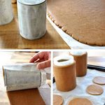 - Gather up the dough remnants and roll out again. Place one can with the dough wrapped around it upright onto the dough and use a small knife to cut out rounds. Repeat to make 2 rounds. These will be the lids. Place onto baking tray.