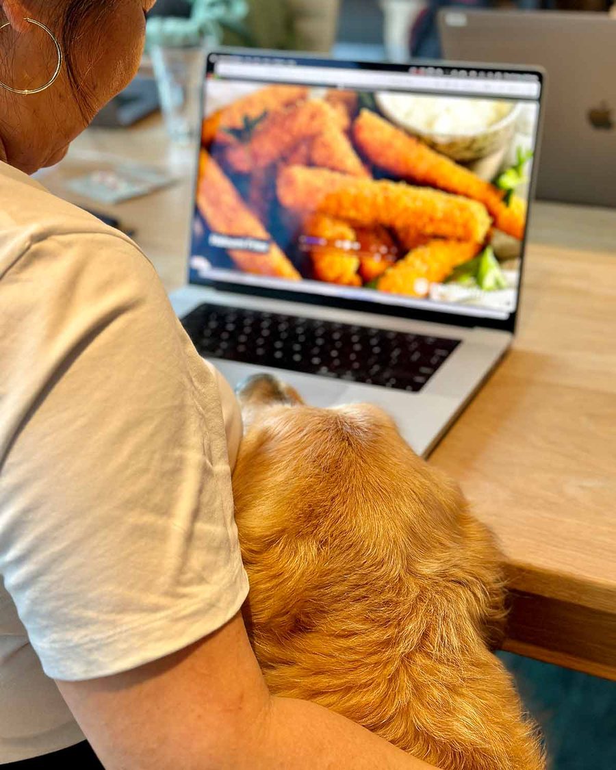 Reviewing todayโs recipe video with me. (And drooling all over the keyboard in the process โ but can we blame him? Absolutely not!)