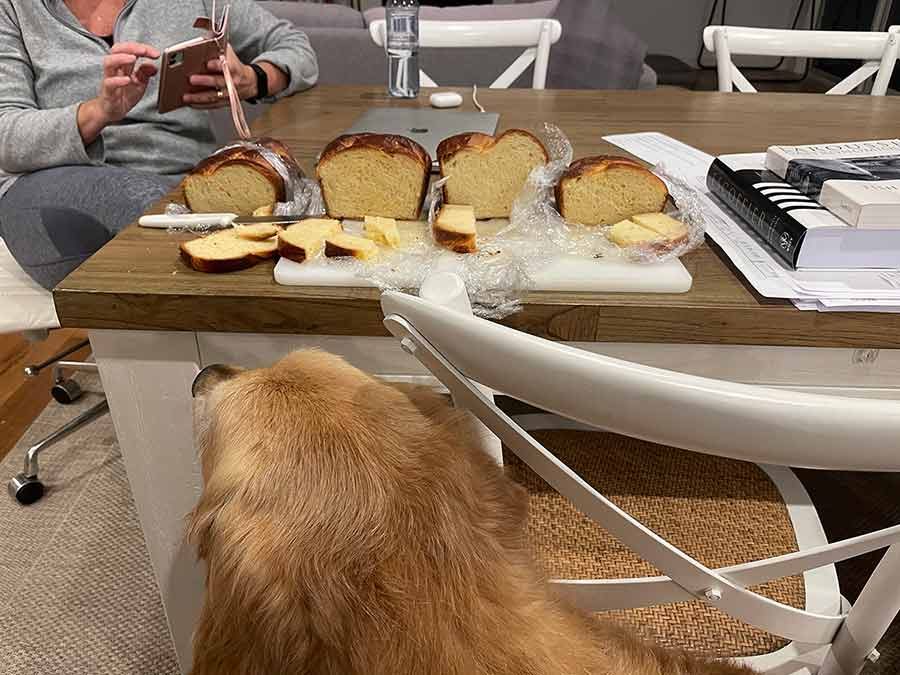 Working on a new recipe, comparing various versions. Dozer’s keen to get involved.😂