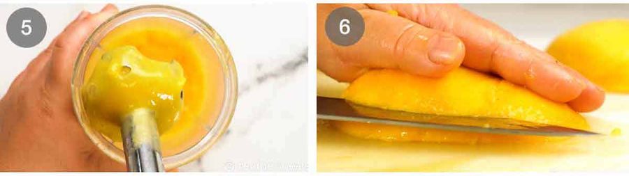 For puree – Then puree the mango using a stick blender, or a small food processor. You might struggle with a large food processor, not enough mango.