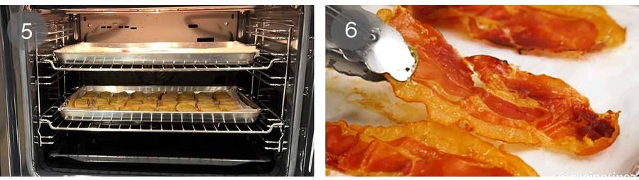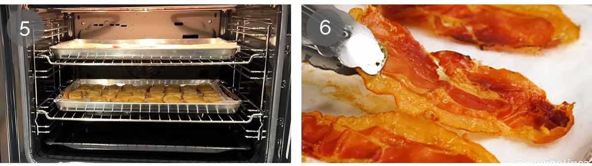 Bake – Put both trays in the oven. I put the prosciutto on the upper shelf.