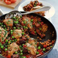 10 minutes of prep, chock full of flavour and a complete meal in one pan. This quick paella is a fast midweek meal made using every day ingredients.