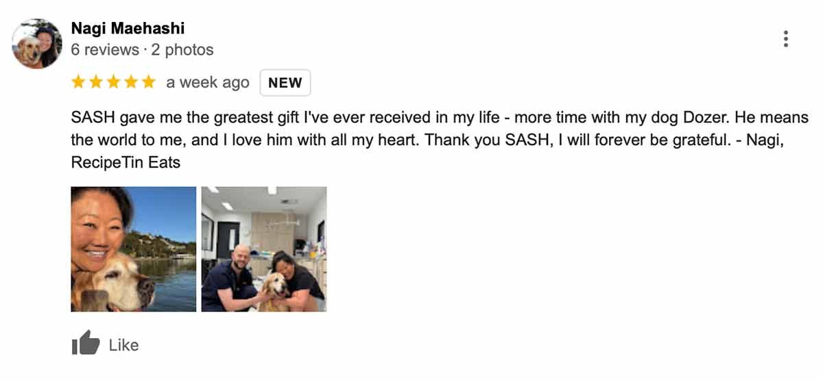 I took Dozer into the Small Animal Specialist Hospital for a check up to see Dr James Crowley, one of the surgeons who operated on Dozer earlier this year and saved his life. I’m so happy to report that Dozer got a big thumbs up!!