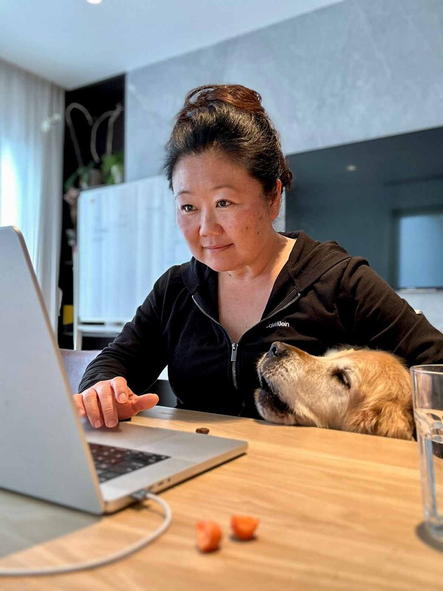I wasn’t at RTM today. I was back in the office, schlepping away on the computer writing up today’s post. I want to tell you here’s Dozer, consoling me because I’m feeling left out. But actually, he just wants that treat on the table. 😂