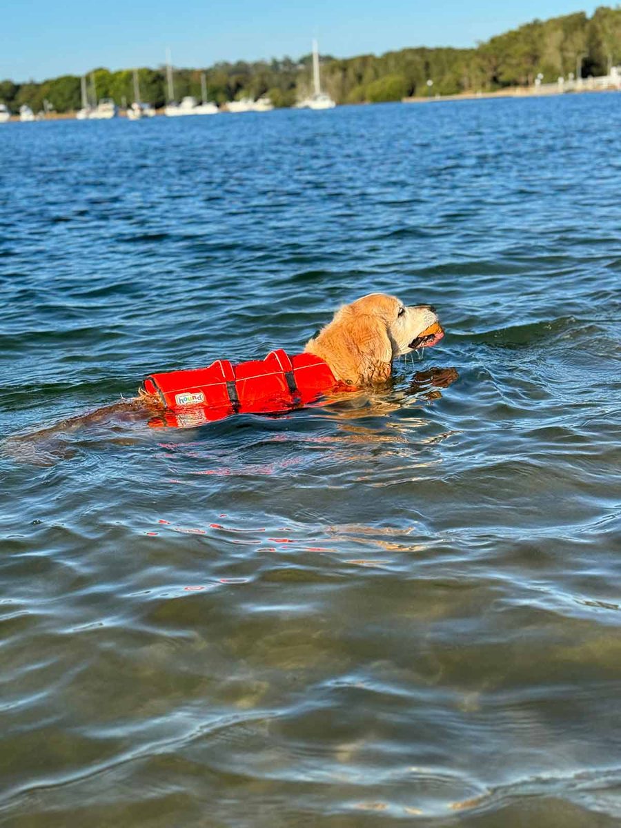 In Dozer news, I finally caved and got him a life jacket so he can swim safely!
