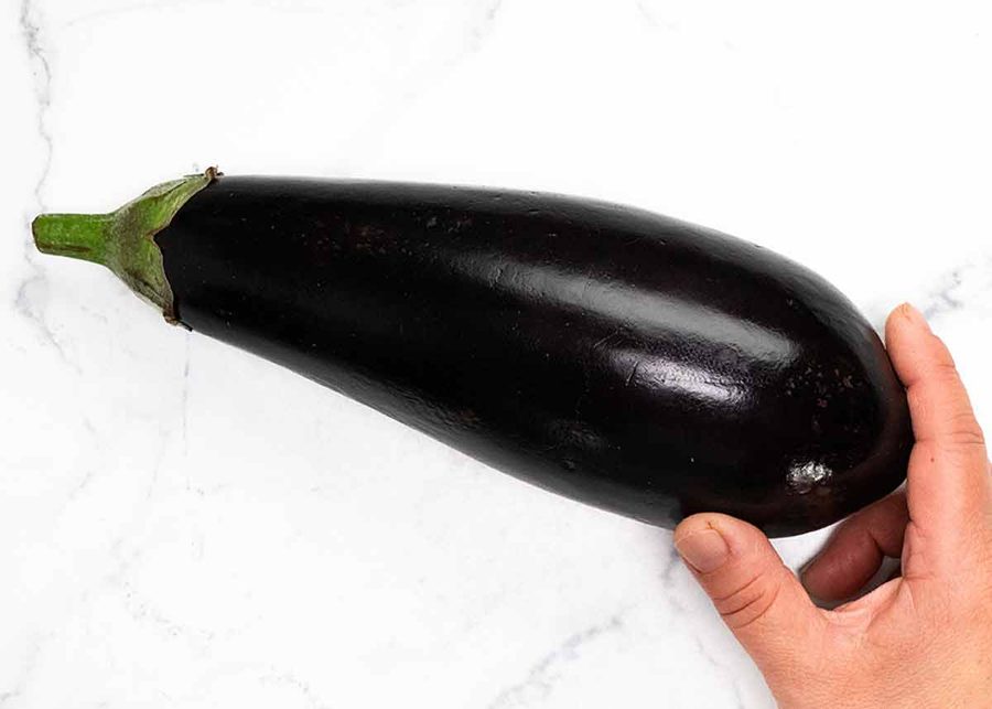 One eggplant around 20 cm / 8″ long, weighing around 300g/10 oz. It’s fine if it’s a little larger or smaller. I’ve made this with an eggplant 500g/1 lb big and it worked great and increased the volume of the dish.
