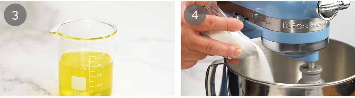 - Add sugar – In a stand mixer or using an electric beater, beat the egg whites on high for 1 minute. While still beating, slowly pour the sugar in over 1 minute.