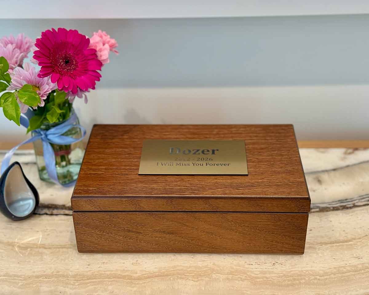 In amongst the sadness though, I had to laugh when I opened it up and picked up the velvet bag inside. It was so much heavier than I expected! 😆 And then I thought, of course it is. He was a big boy. Big dog, big presence, apparently big box too. ❤️