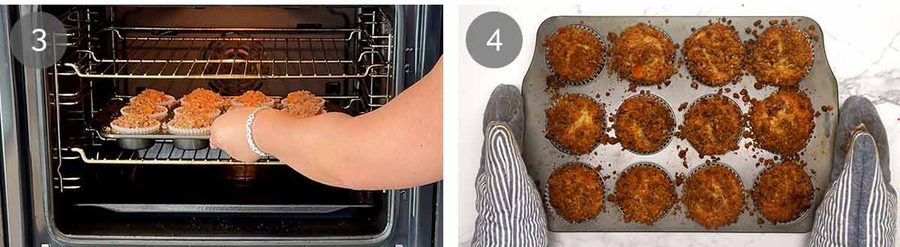- Turn oven up to 200°C / 390°F (180°C fan-forced). Line a 12 hole standard muffin tin with paper liners.