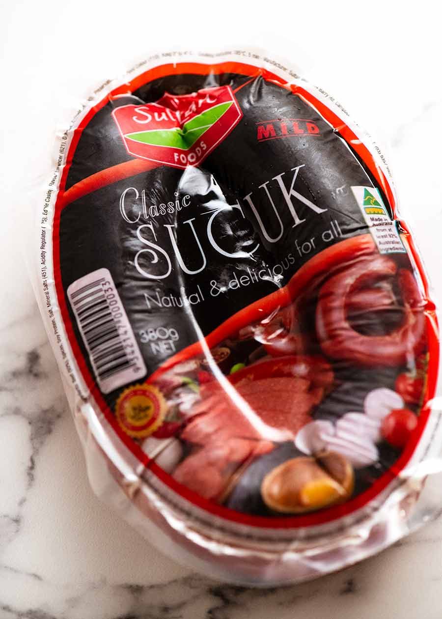 Note: I used chorizo in the recipe video because I ran out of sujuk!