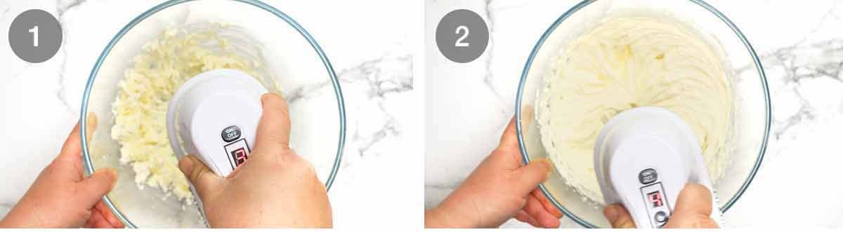 - Beat the cream cheese for a good 2 minutes on medium high until it's really light and creamy, scraping down the sides as needed. Do not shortcut this step, else you may end up with cream cheese lumps!