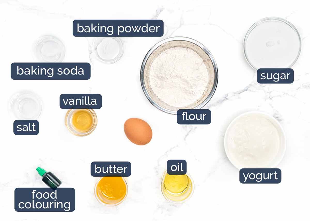 Yogurt – Much loved baking trick to make cakes and muffins with a lovely moist crumb compared to using thinner liquids such as milk. The extra role it plays here is that the acidity in yogurt gives the baking soda a kick start to make the cake rise. This is why sometimes you see a tiny amount of vinegar in cakes, like Red Velvet Cake. Looks totally out of place, but serves a purpose to get the baking soda going.
