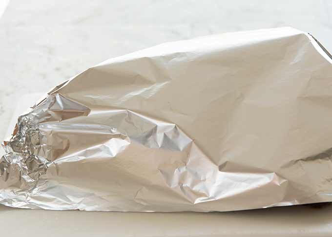 Keep the skin surface level by using scrunched up balls of foil. Because level surface = even high-heat distribution = better crackling!