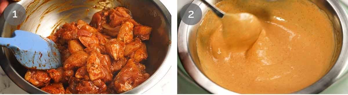 - Season chicken – Mix the Portuguese Chicken Seasoning ingredients in a bowl. Add chicken and toss to coat. Set aside while you prepare the rest of the ingredients, or overnight if you want (though not necessary).