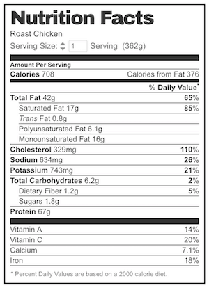 2 cups / 500 ml liquid from pan topped up with low sodium chicken broth Melt butter over medium heat, add flour, stir for 1 minute. Add half the liquid while whisking. Once incorpoated and lump free, add remaining liquid. Continue cooking for 2 minutes, stirring regularly, until gravy thickens. Season with salt and pepper to taste. 5. COOK TIMES: 10 minutes at 220C/450F, then 20 minutes for every 500g/1lb at 180C/350F until the internal temperature is 75C/165F or until juices run clear. This assumes the chicken was taken out of the fridge 30 minutes before cooking. If it’s fridge cold, add another 10 minutes to the cook time. 6. TYING DRUMSTICKS: I find it easiest to use one piece of string, wrap string around one leg, then yank the other leg closer and wrap string around that one to. Then once string is around both of them, it’s much easier to handle to use the string to pull then together then wrap the string around both of them tightly so they are crossed over each other. 7. CARCASS and leftover bits/juices: Scrape it all into a pot or slow cooker, add water so water is about 2.5cm / 1″ above chicken. Add 2 tsp Vegeta or chicken stock powder or 2 crumbled cubes, celery, carrot and a few garlic cloves (chunky pieces) and a few sprigs of fresh herbs like thyme/rosemary/parsley OR 1 tsp dried herbs. Simmer 1 hour / slow cooker 6 hours, strain. Pick out/off bits of chicken to use in soup. Use as incredible broth for Chicken Noodle Soup or Chicken Rice Soup. 8. SIDES: Roast potatoes (cut, toss in olive oil, salt, pepper and herbs, roast under chicken for 40 minutes), mashed potato or cauliflower, or garlic bread. Also try Potatoes au Gratin or Easy Cheesy Potato Bake – can make ahead then reheat in oven quickly. Pictured on the very edge of photo in post is this Kale Quinoa Salad (I often have it on hand as it lasts for days and days). Other great salads: Corn Salad with Avocado and Tomato, Roast Pumpkin Spinach Salad, a garden salad with Italian or French Dressing. 9. Nutrition assumes 1.2kg / 2.4lb of meat, remainder is bones discarded. Also assumes all pan juices are consumed which they probably won’t be, also you lose some in the onion/garlic/discarded chicken.