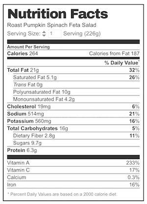 This salad is easy & tasty. I used to just drizzle my pumpkin & spinach salad with caramelised balsamic, but this dressing is so tasty. I use goats cheese, which adds a bit more creaminess & less salt than the feta.