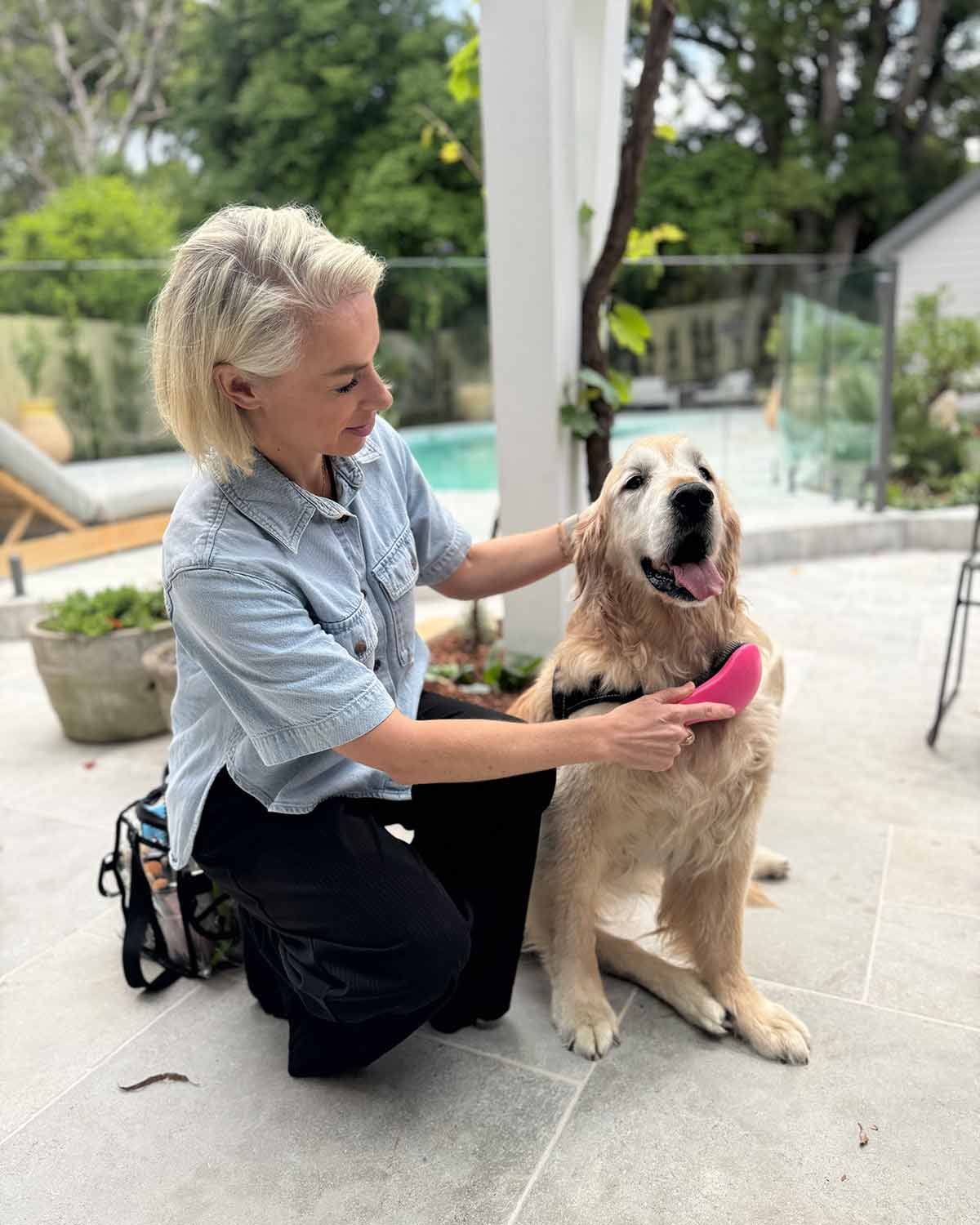 The new extension part of Dozer’s forever home was finished just in the nick of time for a very special guest last week, so Dozer had to get dolled up!! Here he is getting his curls tamed by Kirsty, the H&M wizard who took care of team RecipeTin on the day!