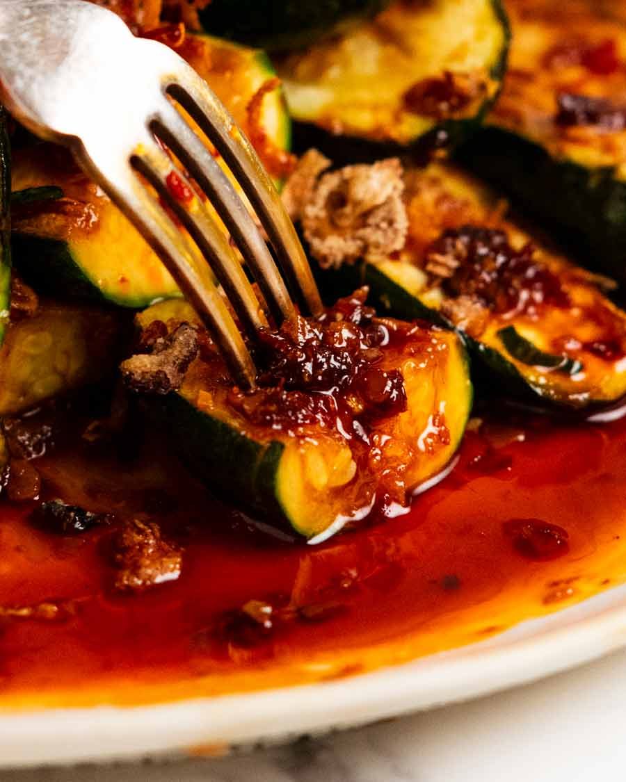 This is so delicious. Recipes for fried shallots (onions can be fried instead of shallots) are all over the internet and super easy. It just takes patience. The zucchini was slightly tender and nicely browned. The sauce was over the top. Went well with the Asian Chilli Chicken recipe. Noticed not a lot of views on the chicken recipe. Might be because “chili” is spelled wrong. Will make over and over, great way to get vegetables on your plate.