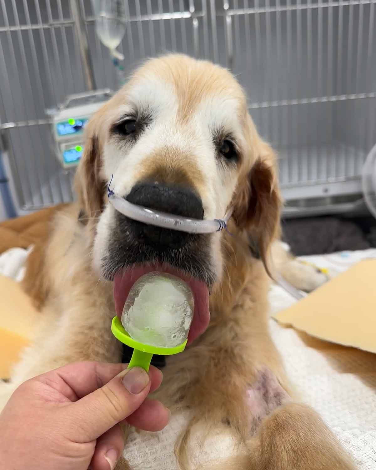 In honour of the joy Dozer has brought to this website over the years, I can’t finish this post without bringing some cheer to the Life of Dozer section. 🙂 Here he is eating an ice pop – literally just plain ice. It’s his absolute favourite treat these days! Funny how much the bar drops when you’re in hospital, gourmet expectations reduced to frozen tap water and he’s living his best life. ❤️