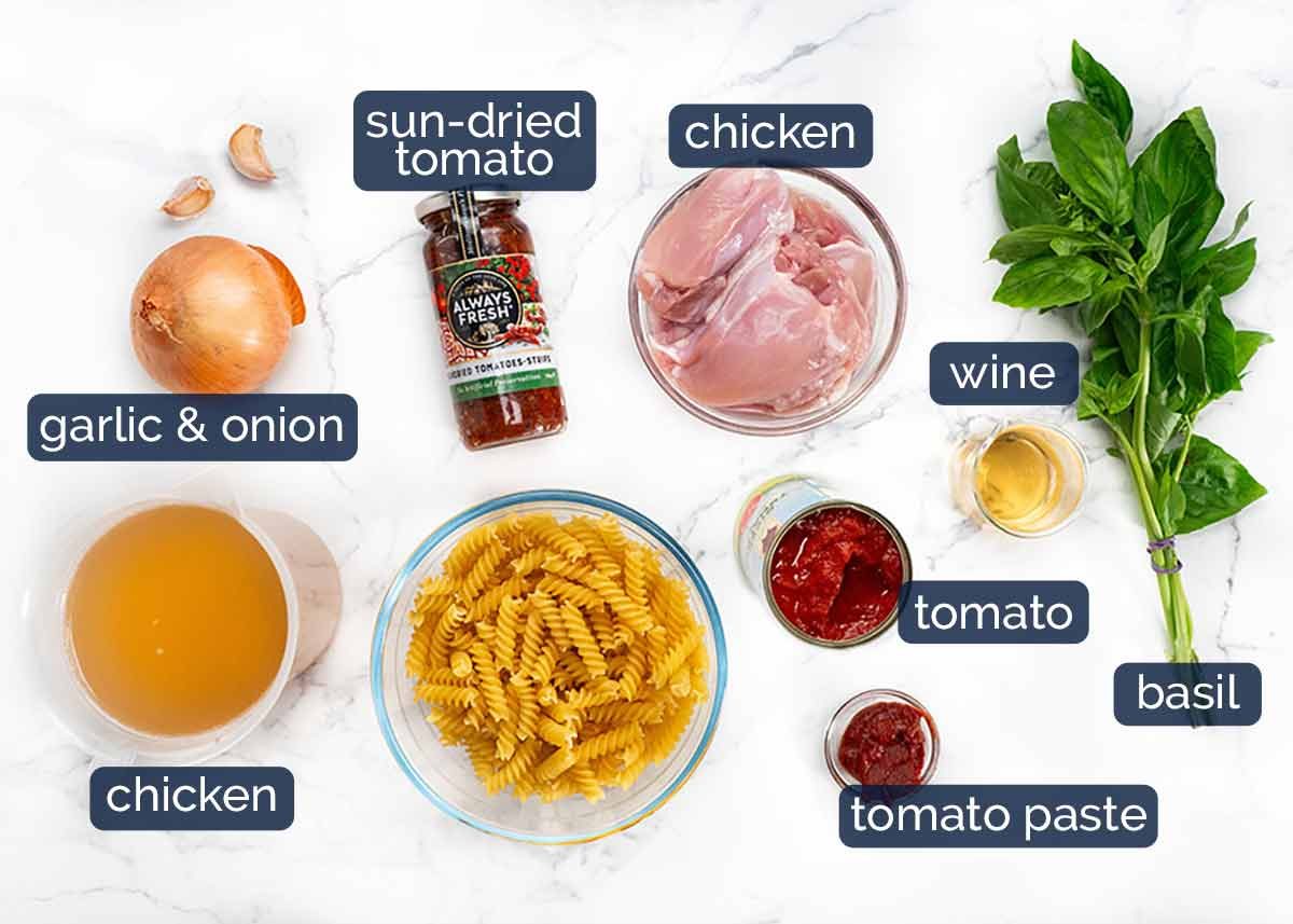 Ingredients for Whipped Ricotta One Pot Chicken Pasta