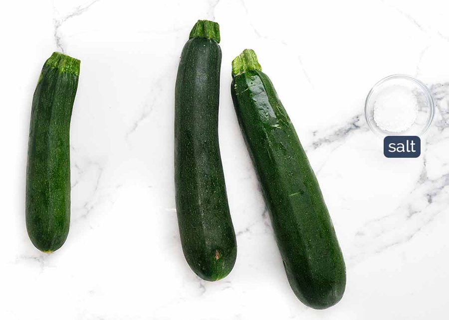 - 2 zucchinis (300g / 10 oz, ~17cm/7″ long) (Note 1)